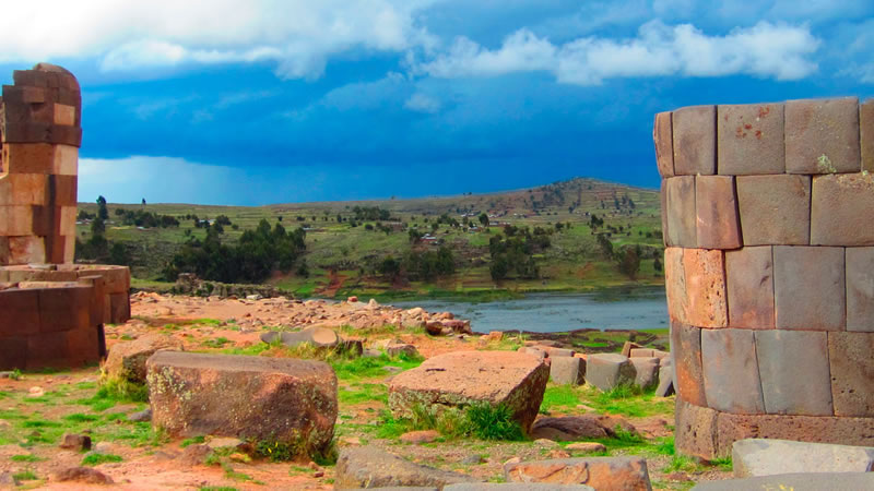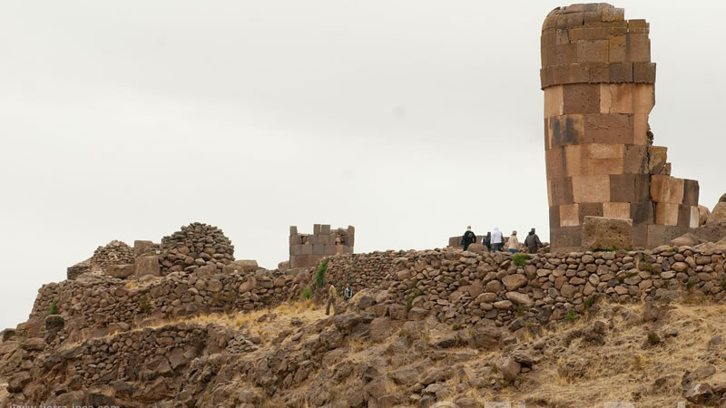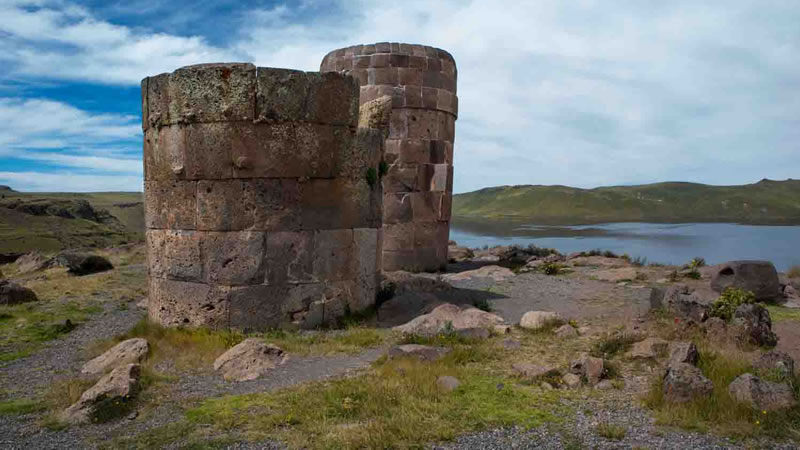 El complejo arqueológico de Sillustani (TORRES FUNERARIAS). esta situado sobre una meseta altiplánica y rodeado alrededor por una laguna mágica llamada Umayo de impactante belleza en dirección Nor oeste de la ciuda de puno a 33 kms. Una de las necrópolis mas importantes del mundo andino.