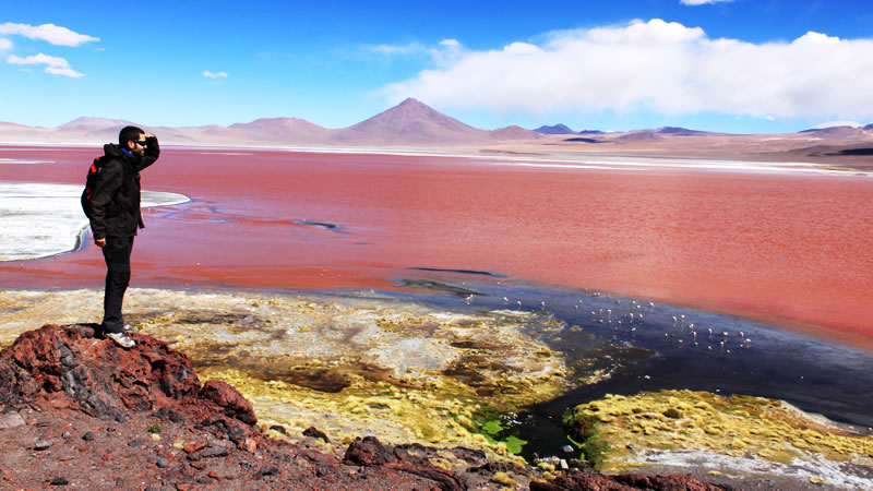 Después del desayuno continuaremos con nuestra aventura, esta vez con destino a la laguna Colorada. En el trayecto observaremos el volcán activo Ollague, las lagunas de Cañapa, Hedionda, Chiarcota y Honda, estas lagunas están pobladas por flamencos.