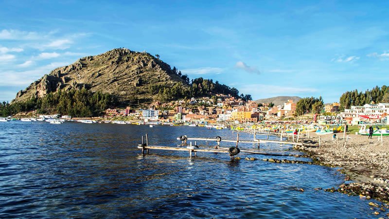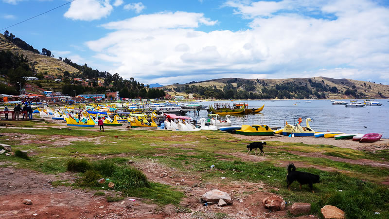 08:15 am Nuestro guía local hace recojo de nuestros clientes (pasajeros), son recogidos de sus hoteles en la ciudad de Copacabana, y traslado al puerto del Lago Titicaca en Copacabana